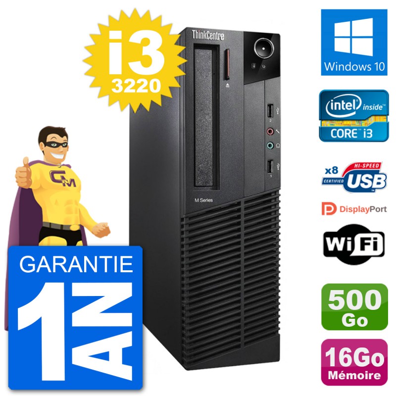 PC Lenovo ThinkCentre M92p SFF - Intel Core i3-3220 3.3 Ghz (3 Mo) - 16 Go DDR3 - Disque Dur 3,5" 500 Go - Graveur DVD - Clef Wifi USB - Windows 10 - Garantie 1 an.