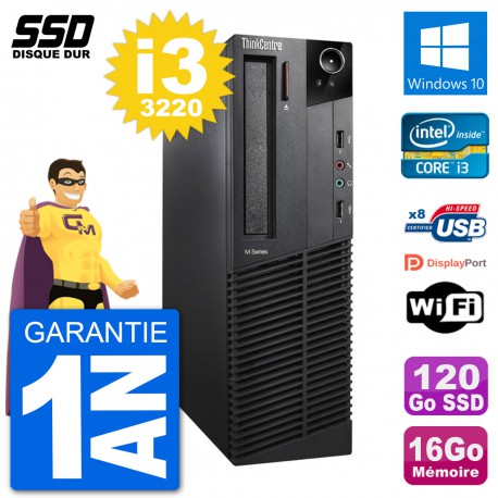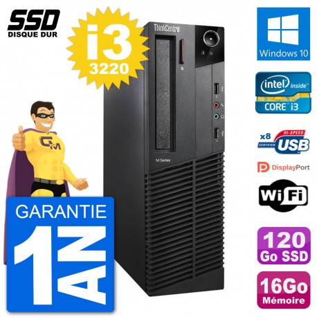 PC Lenovo ThinkCentre M92p SFF - Intel Core i3-3220 3.3 Ghz (3 Mo) - 16 Go DDR3 - Disque Dur SSD 120 Go - Graveur DVD - Clef Wifi USB - Windows 10 - Garantie 1 an.