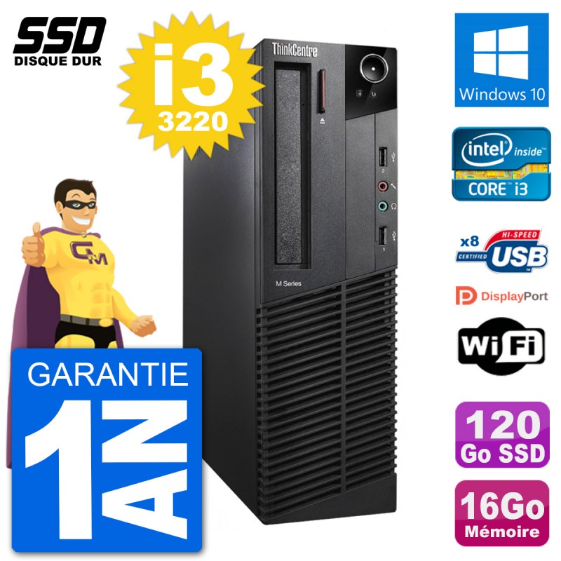 PC Lenovo ThinkCentre M92p SFF Intel i3-3220 RAM 16Go SSD 120Go Windows 10 Wifi