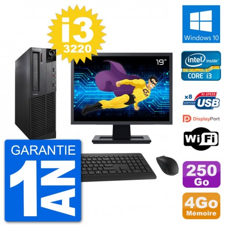 PC Lenovo M92p SFF - Intel Core i3-3220 3.3 Ghz (3 Mo) - 4 Go DDR3 - Disque Dur 3,5" 250 Go - Graveur DVD - Clef Wifi USB - Windows 10 - Livré avec Ecran 19" + clavier + souris (Marques et modèles variables) - Garantie 1 an.