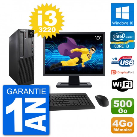 PC Lenovo M92p SFF - Intel Core i3-3220 3.3 Ghz (3 Mo) - 4 Go DDR3 - Disque Dur 3,5" 500 Go - Graveur DVD - Clef Wifi USB - Windows 10 - Livré avec Ecran 19" + clavier + souris (Marques et modèles variables) - Garantie 1 an.