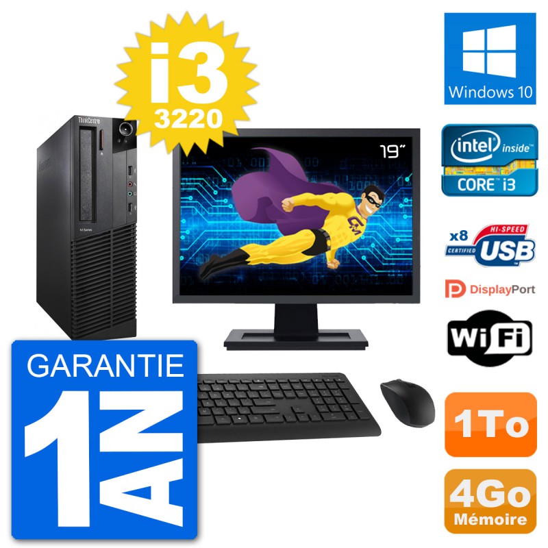 PC Lenovo M92p SFF Ecran 19" Intel i3-3220 RAM 4Go Disque 1To Windows 10 Wifi