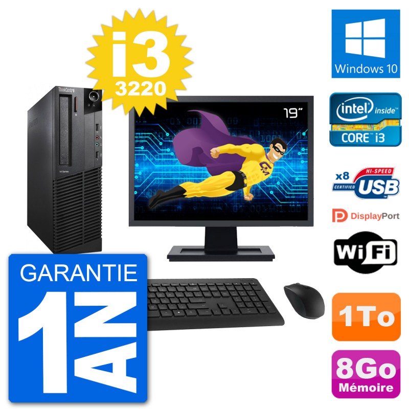 PC Lenovo M92p SFF - Intel Core i3-3220 3.3 Ghz (3 Mo) - 8 Go DDR3 - Disque Dur 3,5" 1 To - Graveur DVD - Clef Wifi USB - Windows 10 - Livré avec Ecran 19" + clavier + souris (Marques et modèles variables) - Garantie 1 an.