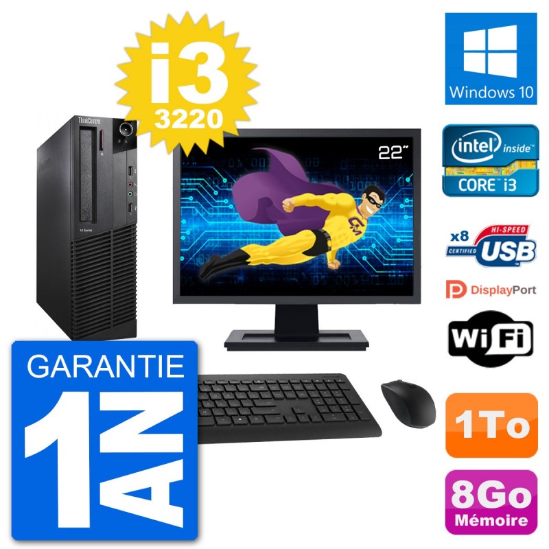 PC Lenovo M92p SFF Ecran 22" Intel i3-3220 RAM 8Go Disque 1To Windows 10 Wifi