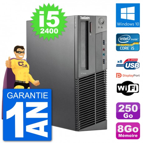 PC Lenovo ThinkCentre M92p SFF - Intel Core i5-2400 3.1 Ghz (6 Mo) - 8 Go DDR3 - Disque Dur 3,5" 250 Go - Graveur DVD - Clef Wifi USB - Windows 10 - Garantie 1 an.
