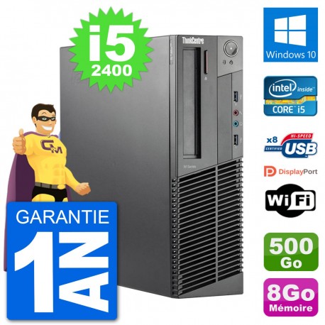 PC Lenovo ThinkCentre M92p SFF - Intel Core i5-2400 3.1 Ghz (6 Mo) - 8 Go DDR3 - Disque Dur 3,5" 500 Go - Graveur DVD - Clef Wifi USB - Windows 10 - Garantie 1 an.