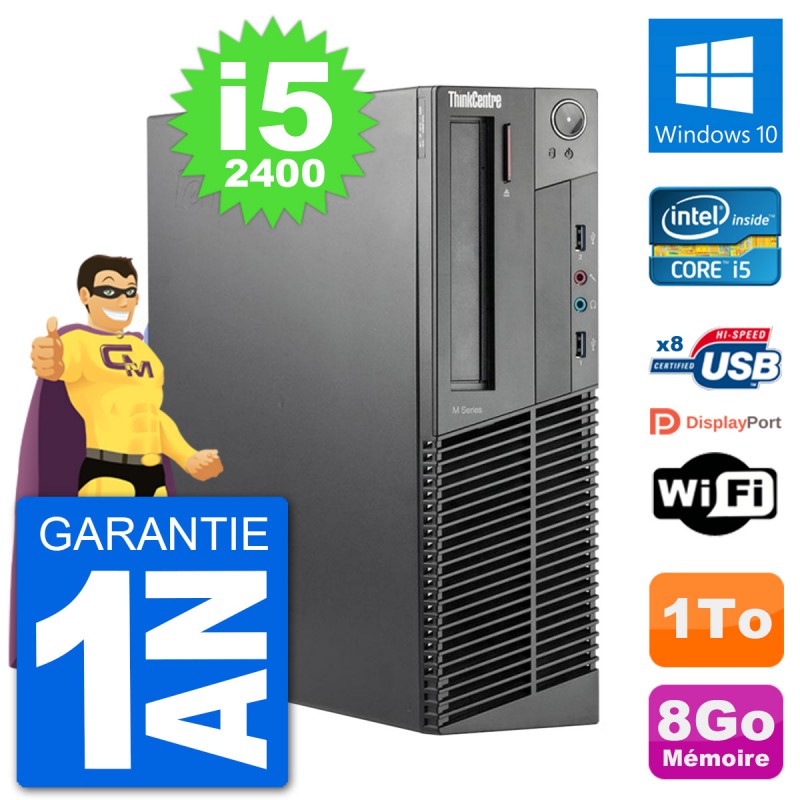 PC Lenovo ThinkCentre M92p SFF - Intel Core i5-2400 3.1 Ghz (6 Mo) - 8 Go DDR3 - Disque Dur 3,5" 1 To - Graveur DVD - Clef Wifi USB - Windows 10 - Garantie 1 an.