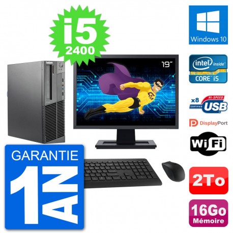PC Lenovo M92p SFF - Intel Core i5-2400 3.1 Ghz (6 Mo) - 16 Go DDR3 - Disque Dur 3,5" 2 To - Graveur DVD - Clef Wifi USB - Windows 10 - Livré avec Ecran 19" + clavier + souris (Marques et modèles variables) - Garantie 1 an.