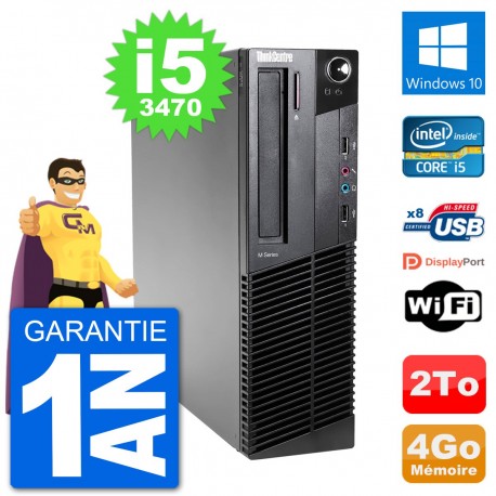 PC Lenovo ThinkCentre M92p SFF - Intel Core i5-3470 3.2 Ghz (6 Mo) - 4 Go DDR3 - Disque Dur 3,5" 2 To - Graveur DVD - Clef Wifi USB - Windows 10 - Garantie 1 an.