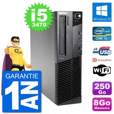 PC Lenovo ThinkCentre M92p SFF - Intel Core i5-3470 3.2 Ghz (6 Mo) - 8 Go DDR3 - Disque Dur 3,5" 250 Go - Graveur DVD - Clef Wifi USB - Windows 10 - Garantie 1 an.