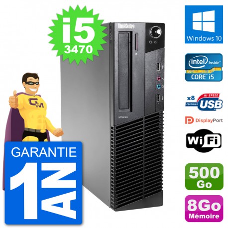 PC Lenovo ThinkCentre M92p SFF - Intel Core i5-3470 3.2 Ghz (6 Mo) - 8 Go DDR3 - Disque Dur 3,5" 500 Go - Graveur DVD - Clef Wifi USB - Windows 10 - Garantie 1 an.