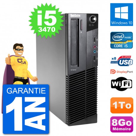 PC Lenovo ThinkCentre M92p SFF - Intel Core i5-3470 3.2 Ghz (6 Mo) - 8 Go DDR3 - Disque Dur 3,5" 1 To - Graveur DVD - Clef Wifi USB - Windows 10 - Garantie 1 an.