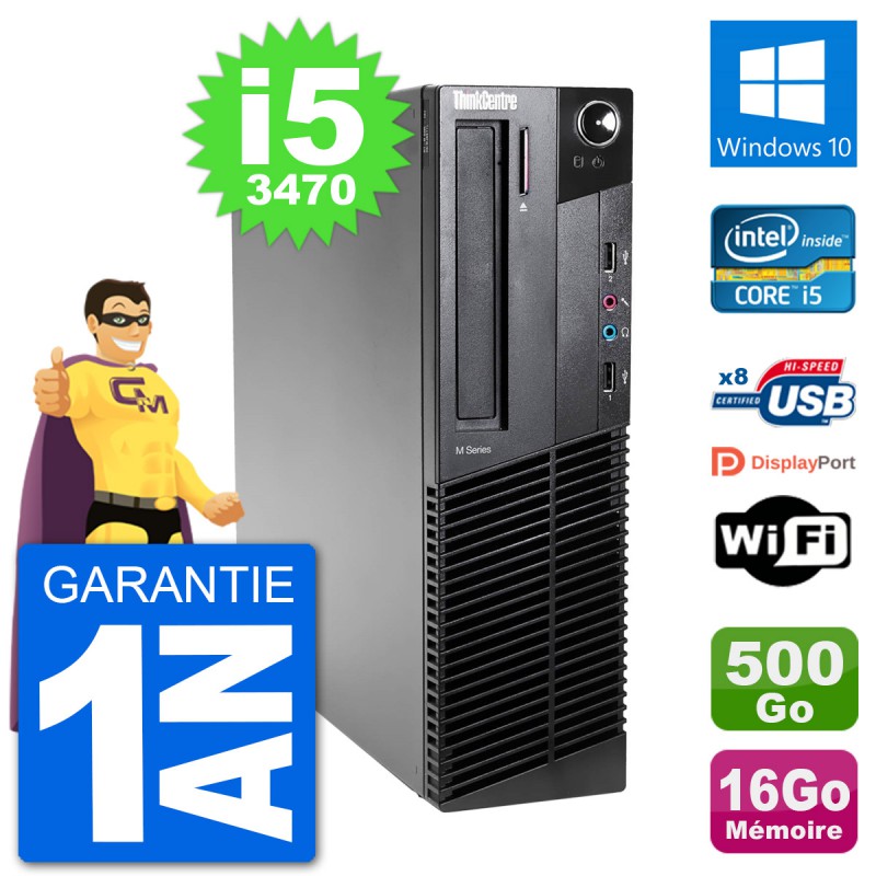 PC Lenovo ThinkCentre M92p SFF - Intel Core i5-3470 3.2 Ghz (6 Mo) - 16 Go DDR3 - Disque Dur 3,5" 500 Go - Graveur DVD - Clef Wifi USB - Windows 10 - Garantie 1 an.