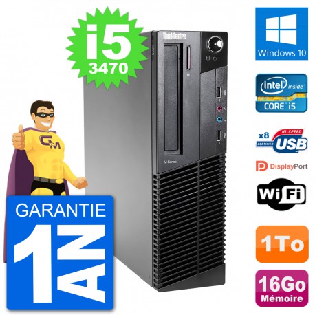 PC Lenovo M92p SFF Intel i5-3470 RAM 16Go Disque Dur 1To Windows 10 Wifi