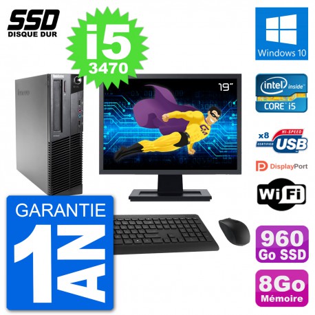 PC Lenovo M92p SFF - Intel Core i5-3470 3.2 Ghz (6 Mo) - 8 Go DDR3 - Disque Dur SSD 960 Go - Graveur DVD - Clef Wifi USB - Windows 10 - Livré avec Ecran 19" + clavier + souris (Marques et modèles variables) - Garantie 1 an.