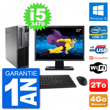 PC Lenovo M92p SFF - Intel Core i5-3470 3.2 Ghz (6 Mo) - 4 Go DDR3 - Disque Dur 3,5" 2 To - Graveur DVD - Clef Wifi USB - Windows 10 - Livré avec Ecran 27" + clavier + souris (Marques et modèles variables) - Garantie 1 an.