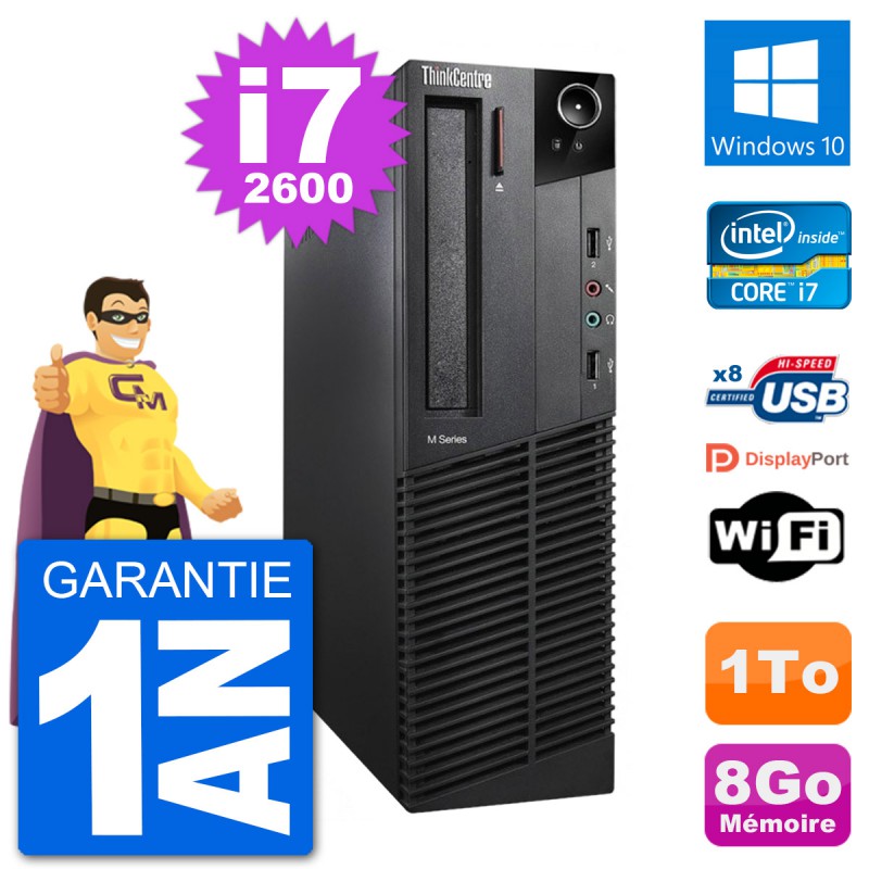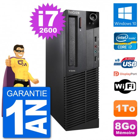 PC Lenovo ThinkCentre M92p SFF - Intel Core i7-2600 3.4 Ghz (8 Mo) - 8 Go DDR3 - Disque Dur 3,5" 1 To - Graveur DVD - Clef Wifi USB - Windows 10 - Garantie 1 an.