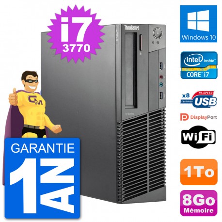 PC Lenovo ThinkCentre M92p SFF - Intel Core i7-3770 3.4 Ghz (8 Mo) - 8 Go DDR3 - Disque Dur 3,5" 1 To - Graveur DVD - Clef Wifi USB - Windows 10 - Garantie 1 an.
