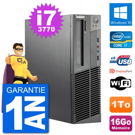 PC Lenovo ThinkCentre M92p SFF - Intel Core i7-3770 3.4 Ghz (8 Mo) - 16 Go DDR3 - Disque Dur 3,5" 1 To - Graveur DVD - Clef Wifi USB - Windows 10 - Garantie 1 an.