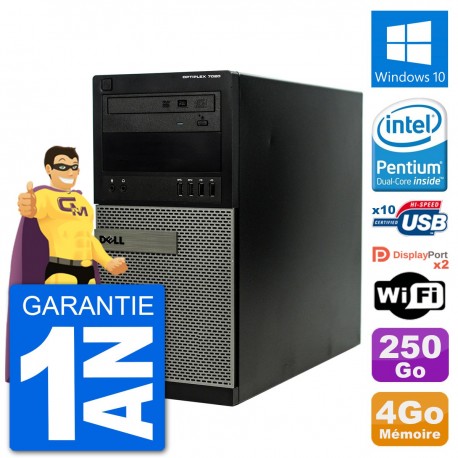 PC Dell Optiplex 7020 MT (Moyenne Tour) - Intel Dual-Core G3220 3.0 Ghz (3 Mo) - 4 Go DDR3 - Disque Dur 3,5" 250 Go - Graveur DVD - Clef Wifi USB - Windows 10 - Garantie 1 an.