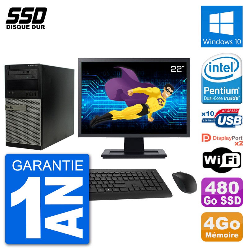 PC Dell 7020 MT - Intel Dual-Core G3220 3.0 Ghz (3 Mo) - 4 Go DDR3 - Disque Dur SSD 480 Go - Graveur DVD - Clef Wifi USB - Windows 10 - Livré avec Ecran 22" + clavier + souris (Marques et modèles variables) - Garantie 1 an.
