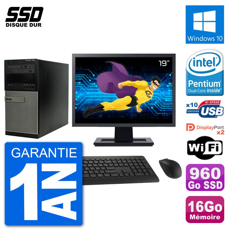 PC Dell 7020 MT - Intel Dual-Core G3220 3.0 Ghz (3 Mo) - 16 Go DDR3 - Disque Dur SSD 960 Go - Graveur DVD - Clef Wifi USB - Windows 10 - Livré avec Ecran 22" + clavier + souris (Marques et modèles variables) - Garantie 1 an.