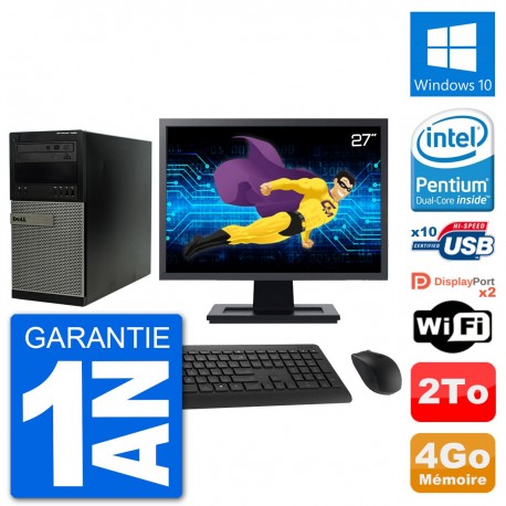 PC Dell 7020 MT - Intel Dual-Core G3220 3.0 Ghz (3 Mo) - 4 Go DDR3 - Disque Dur 3,5" 2 To - Graveur DVD - Clef Wifi USB - Windows 10 - Livré avec Ecran 27" + clavier + souris (Marques et modèles variables) - Garantie 1 an.