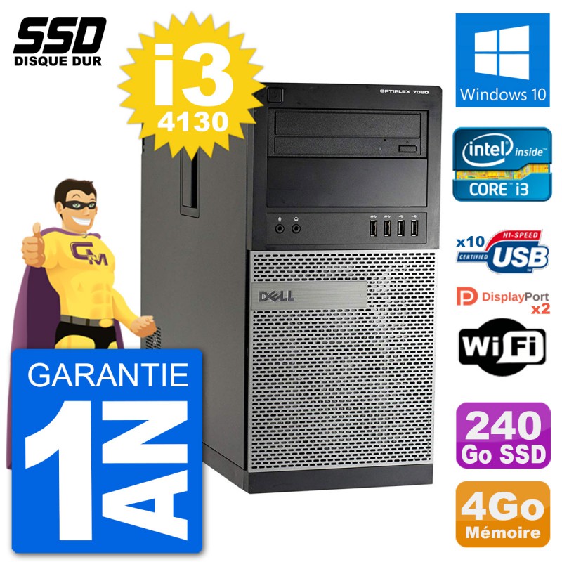 PC Dell Optiplex 7020 MT (Moyenne Tour) - Intel Core i3-4130 3.4 Ghz (3 Mo) - 4 Go DDR3 - Disque Dur SSD 240 Go - Graveur DVD - Clef Wifi USB - Windows 10 - Garantie 1 an.