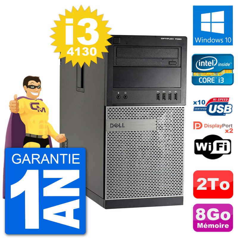 PC Dell Optiplex 7020 MT (Moyenne Tour) - Intel Core i3-4130 3.4 Ghz (3 Mo) - 8 Go DDR3 - Disque Dur 3,5" 2 To - Graveur DVD - Clef Wifi USB - Windows 10 - Garantie 1 an.