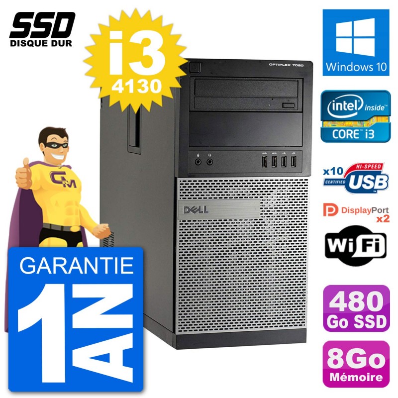 PC Dell Optiplex 7020 MT (Moyenne Tour) - Intel Core i3-4130 3.4 Ghz (3 Mo) - 8 Go DDR3 - Disque Dur SSD 480 Go - Graveur DVD - Clef Wifi USB - Windows 10 - Garantie 1 an.
