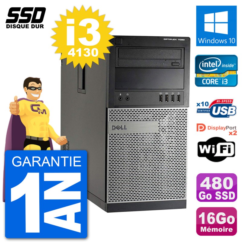 PC Dell Optiplex 7020 MT (Moyenne Tour) - Intel Core i3-4130 3.4 Ghz (3 Mo) - 16 Go DDR3 - Disque Dur SSD 480 Go - Graveur DVD - Clef Wifi USB - Windows 10 - Garantie 1 an.