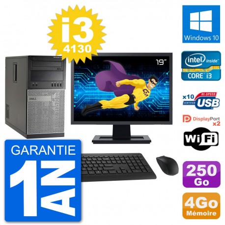 PC Dell 7020 MT - Intel Core i3-4130 3.4 Ghz (3 Mo) - 4 Go DDR3 - Disque Dur 3,5" 250 Go - Graveur DVD - Clef Wifi USB - Windows 10 - Livré avec Ecran 19" + clavier + souris (Marques et modèles variables) - Garantie 1 an.
