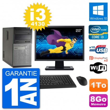 PC Dell 7020 MT - Intel Core i3-4130 3.4 Ghz (3 Mo) - 8 Go DDR3 - Disque Dur 3,5" 1 To - Graveur DVD - Clef Wifi USB - Windows 10 - Livré avec Ecran 22" + clavier + souris (Marques et modèles variables) - Garantie 1 an.