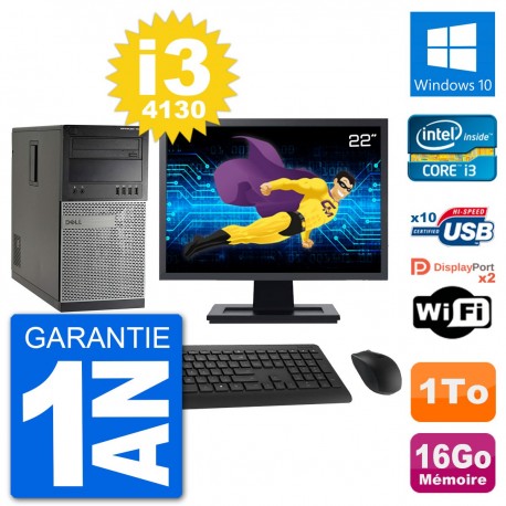PC Dell 7020 MT - Intel Core i3-4130 3.4 Ghz (3 Mo) - 16 Go DDR3 - Disque Dur 3,5" 1 To - Graveur DVD - Clef Wifi USB - Windows 10 - Livré avec Ecran 22" + clavier + souris (Marques et modèles variables) - Garantie 1 an.