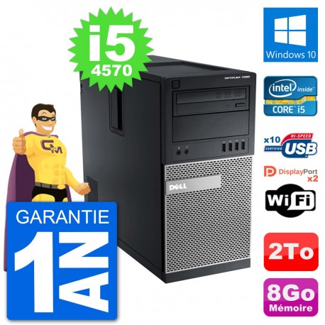 PC Dell Optiplex 7020 MT (Moyenne Tour) - Intel Core i5-4570 3.2 Ghz (6 Mo) - 8 Go DDR3 - Disque Dur 3,5" 2 To - Graveur DVD - Clef Wifi USB - Windows 10 - Garantie 1 an.