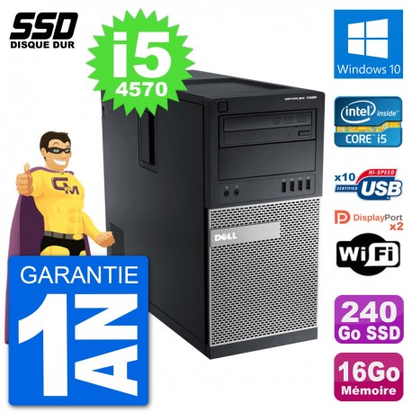 PC Dell Optiplex 7020 MT (Moyenne Tour) - Intel Core i5-4570 3.2 Ghz (6 Mo) - 16 Go DDR3 - Disque Dur SSD 240 Go - Graveur DVD - Clef Wifi USB - Windows 10 - Garantie 1 an.