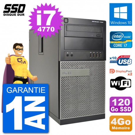PC Dell Optiplex 7020 MT (Moyenne Tour) - Intel Core i7-4770 3.4 Ghz (8 Mo) - 4 Go DDR3 - Disque Dur SSD 120 Go - Graveur DVD - Clef Wifi USB - Windows 10 - Garantie 1 an.