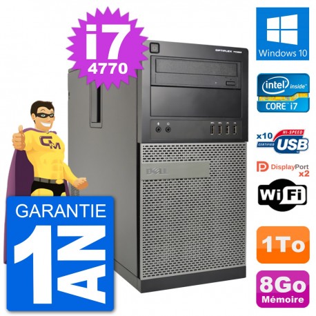PC Dell Optiplex 7020 MT (Moyenne Tour) - Intel Core i7-4770 3.4 Ghz (8 Mo) - 8 Go DDR3 - Disque Dur 3,5" 1 To - Graveur DVD - Clef Wifi USB - Windows 10 - Garantie 1 an.