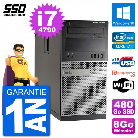 PC Dell Optiplex 7020 MT (Moyenne Tour) - Intel Core i7-4790 3.6 Ghz (8 Mo) - 8 Go DDR3 - Disque Dur SSD 480 Go - Graveur DVD - Clef Wifi USB - Windows 10 - Garantie 1 an.