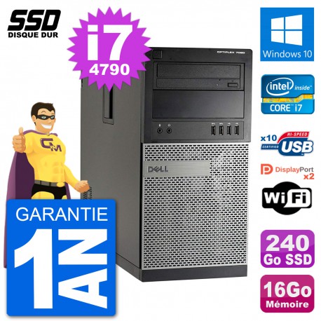 PC Dell Optiplex 7020 MT (Moyenne Tour) - Intel Core i7-4790 3.6 Ghz (8 Mo) - 16 Go DDR3 - Disque Dur SSD 240 Go - Graveur DVD - Clef Wifi USB - Windows 10 - Garantie 1 an.
