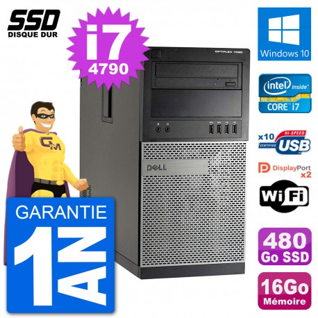 PC Dell Optiplex 7020 MT (Moyenne Tour) - Intel Core i7-4790 3.6 Ghz (8 Mo) - 16 Go DDR3 - Disque Dur SSD 480 Go - Graveur DVD - Clef Wifi USB - Windows 10 - Garantie 1 an.