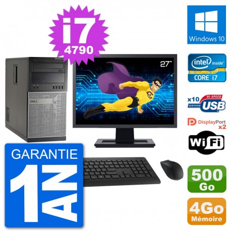PC Dell 7020 MT - Intel Core i7-4790 3.6 Ghz (8 Mo) - 4 Go DDR3 - Disque Dur 3,5" 500 Go - Graveur DVD - Clef Wifi USB - Windows 10 - Livré avec Ecran 27" + clavier + souris (Marques et modèles variables) - Garantie 1 an.
