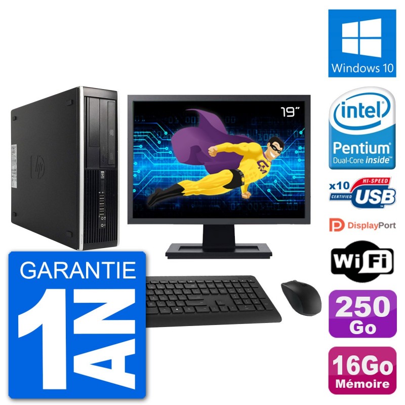 PC HP Elite 8300 SFF (Slim) - Intel Pentium Dual-Core G630 2.7 Ghz (3 Mo) - 16 Go DDR3 - Disque Dur 3,5" 250 Go - Graveur DVD - Clef Wifi USB - Windows 10 - Livré avec Ecran 19" + clavier + souris (Marques et modèles variables) - Garantie 1 an.