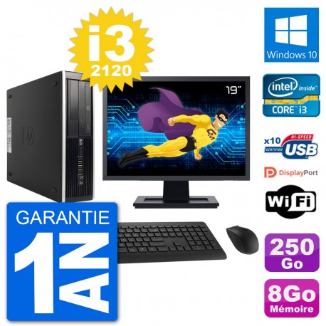 PC HP 8300 SFF Ecran 19" Intel i3-2120 RAM 8Go Disque 250Go Windows 10 Wifi