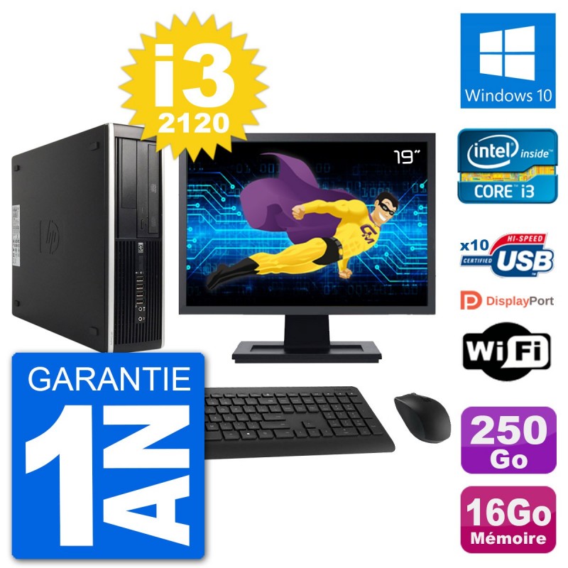 PC HP 8300 SFF Ecran 19" Intel i3-2120 RAM 16Go Disque 250Go Windows 10 Wifi