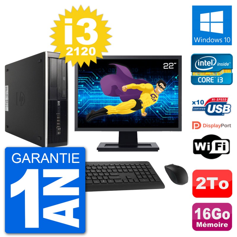PC HP 8300 Elite SFF Ecran 22" Intel i3-2120 RAM 16Go Disque 2To Windows 10 Wifi