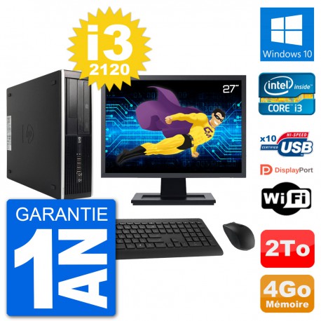 PC HP 8300 SFF Ecran 27" Intel i3-2120 RAM 4Go Disque Dur 2To Windows 10 Wifi