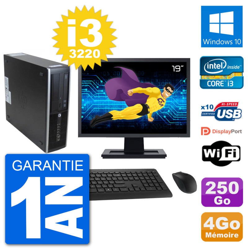 PC HP Elite 8300 SFF (Slim) - Intel Core i3-3220 3.3 Ghz (3 Mo) - 4 Go DDR3 - Disque Dur 3,5" 250 Go - Graveur DVD - Clef Wifi USB - Windows 10 - Livré avec Ecran 19" + clavier + souris (Marques et modèles variables) - Garantie 1 an.
