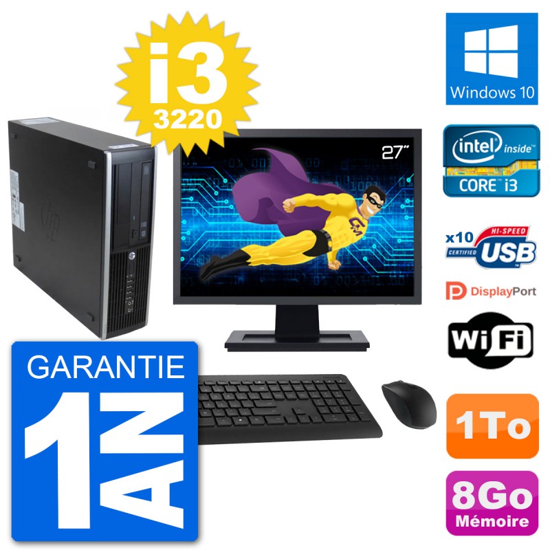 PC HP 8300 SFF Ecran 27" Intel i3-3220 RAM 8Go Disque Dur 1To Windows 10 Wifi