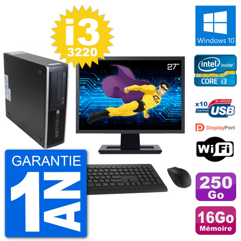 PC HP 8300 SFF Ecran 27" Intel i3-3220 RAM 16Go Disque 250Go Windows 10 Wifi